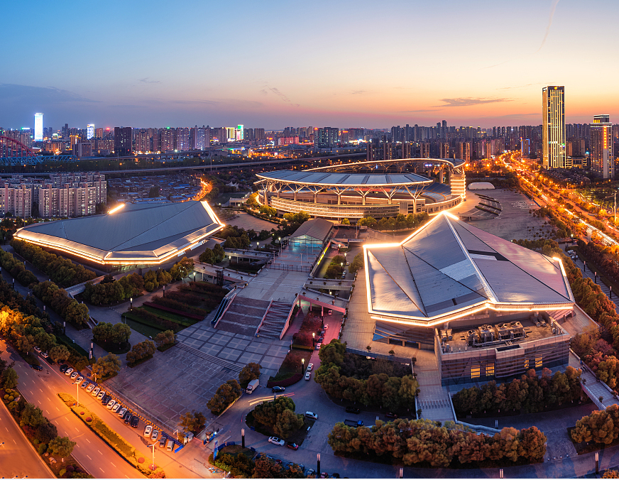 濱湖國際會展中心位于濱湖新區廬州大道與錦繡大道交口西南角,占地58.62公頃,總建筑面積約33.28萬平方米,建筑包括展...